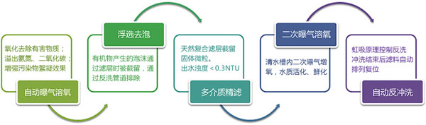 TH-YYA一體化凈水設(shè)備全程運用物理方法,即多層過濾(滲井精濾)、斜板沉淀、曝氣溶氧、自動反沖洗、可有效去除水中懸浮物、有機物、重金屬離子等物質(zhì),運行中不會產(chǎn)生或添加任何新的物質(zhì),更不會改變水體的性狀,因而是***安全的方式。